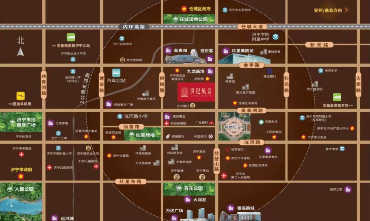 汇涛·世纪风景,下楼即享新世纪广场美景,坐拥城芯“绿肺“,演绎“城市山水”,占据“大户人家”风水宝地,于繁华里,匠筑济宁城芯稀缺生态宜居住区!
