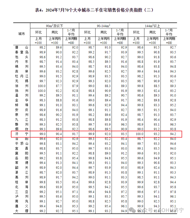再降0.6个百分点!济宁市2024年7月份房价指数出炉