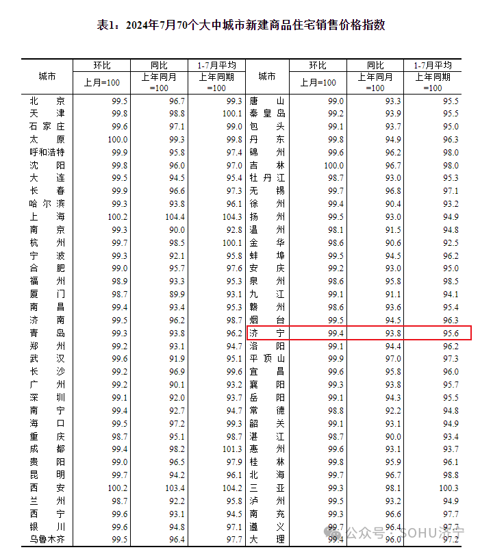 搜狐网济宁小编注意到:今早9点30分,国家统计局发布了2024年7月份70个大中城市商品住宅销售价格变动情况统计数据。2024年7月份济宁新建商品住宅销售价格环比下降0.6个百分点。