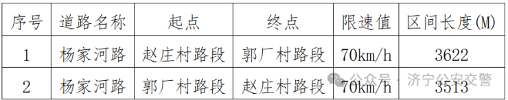 为规范道路交通秩序,加强道路交通管理,预防和减少道路交通事故,依据《中华人民共和国行政处罚法》《道路交通安全违法行为处理程序规定》《山东省实施<中华人民共和国道路交通安全法>办法》《非现场查处道路交通安全违法行为操作规程(试行)》等有关规定,结合道路交通管理实际情况,济宁市公安局交通管理支队高新区勤务大队拟启用以下交通技术监控设备(区间测速设备),现将有关事项予以通告。