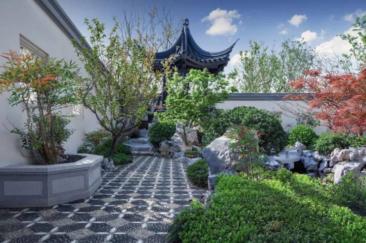 建面约290㎡中式下叠,突破建筑界限,享超高赠送空间,最大可享约350㎡独门庭院,盛满人间清欢,院内亭台水榭、花木石草,中式之美融于其中,院中读书对弈,会友品茗,寻得理想生活的宁静。