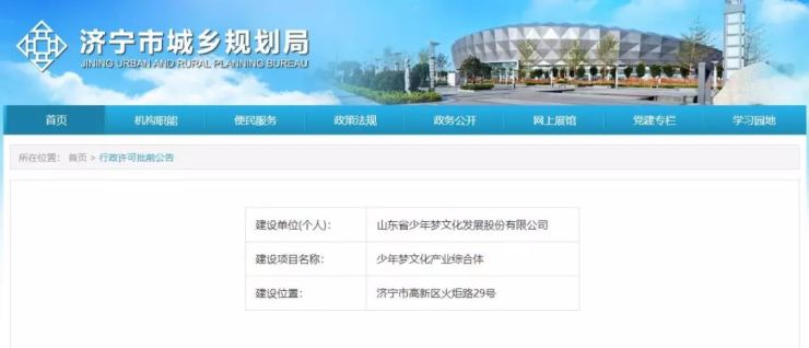 济宁搜狐焦点采编:较新消息!济宁城乡规划局网站发布,济宁英克莱片区用地已获批,未来将建设少年梦文化产业综合体项目!