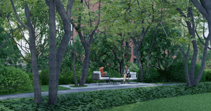 宅间景观是单元专属的户外接待区,组团级的公共景观空间。