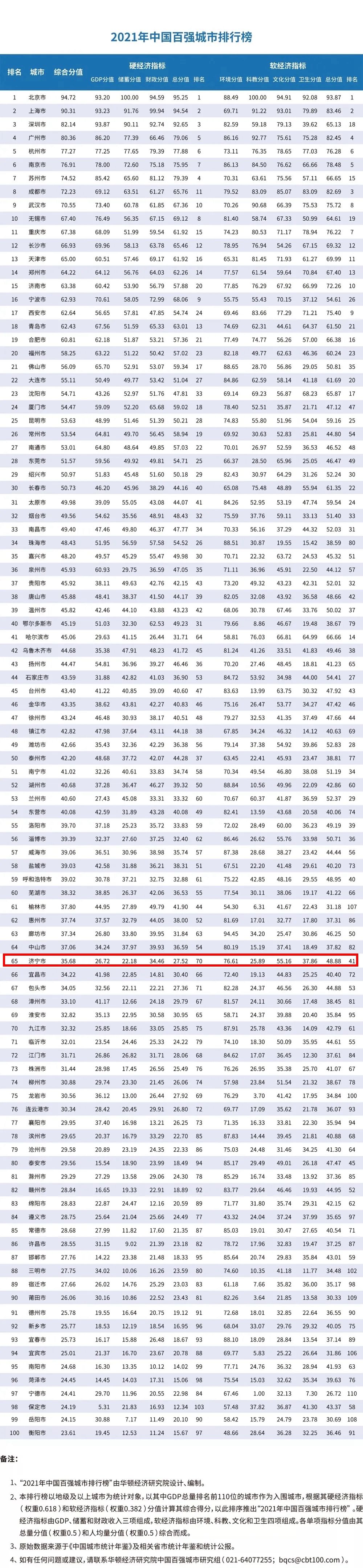 济宁第65位,2021年中国百强城市排行榜名单出炉