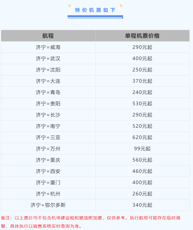 出行提示:特价机票来袭!济宁机场多条航线已陆续恢复
