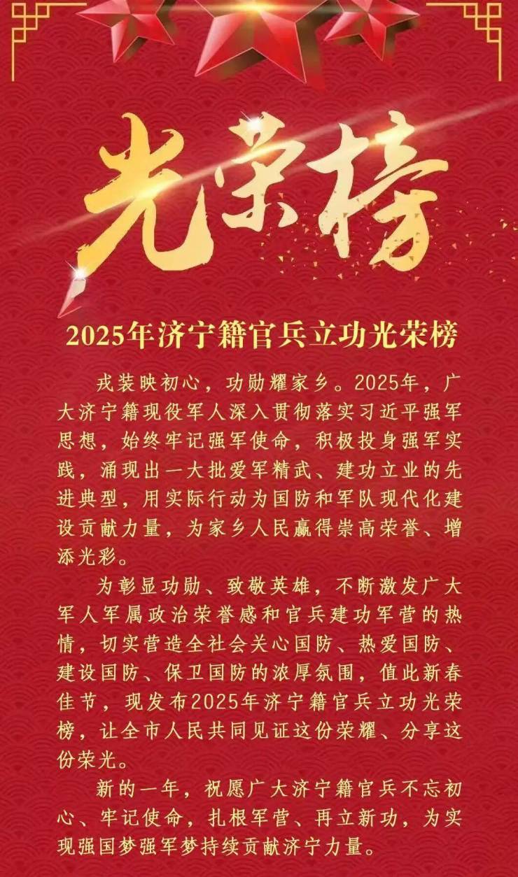 骄傲!2025年济宁籍官兵立功光荣榜发布!