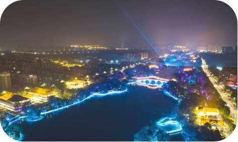 项目由深圳光影百年科技有限公司与曲阜鲁班古建发展投资集团联合投资建设,总投资11亿元,总建筑面积12万平方米。项目围绕“曲阜会客厅·旅游新亮点”定位,沿蓼河5公里核心水域,建设“灯火蓼河古街”“舟游蓼河圣境”两大板块和10公里市民休闲步道,通过光影科技赋能数字夜游。其中,“灯火蓼河古街”板块以“明清古街与新中式风貌”建筑为载体,盘活5万平米闲置资产,吸引商户400余家,打造成为集“吃、住、行、游、购、娱、演”于一体的“文商旅综合体”和“沉浸式古风市集”;“舟游蓼河圣境”板块借助数字光影媒介,通过4大水幕秀、12个3D光影秀、15个微演艺,展现“一船入圣境、一河越千年”的文化圣境,打造“全国首个纪实情景行浸式文化朝圣夜游”。项目建成后,年可接待游客70万人次,新增旅游收入1.5亿元,带动就业3000人。