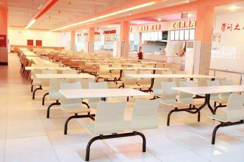 这里就餐桌椅及餐台均根据学生的身高量身定做