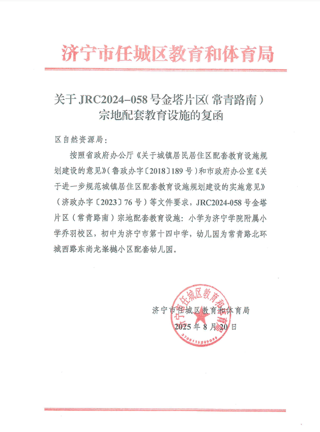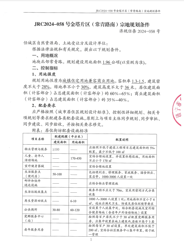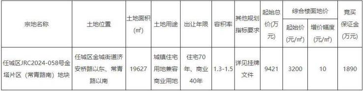 地块名:任城区JRC2024-058号金塔片区(常青路南)地块【济宁市任合天青置业有限公司竞得】
