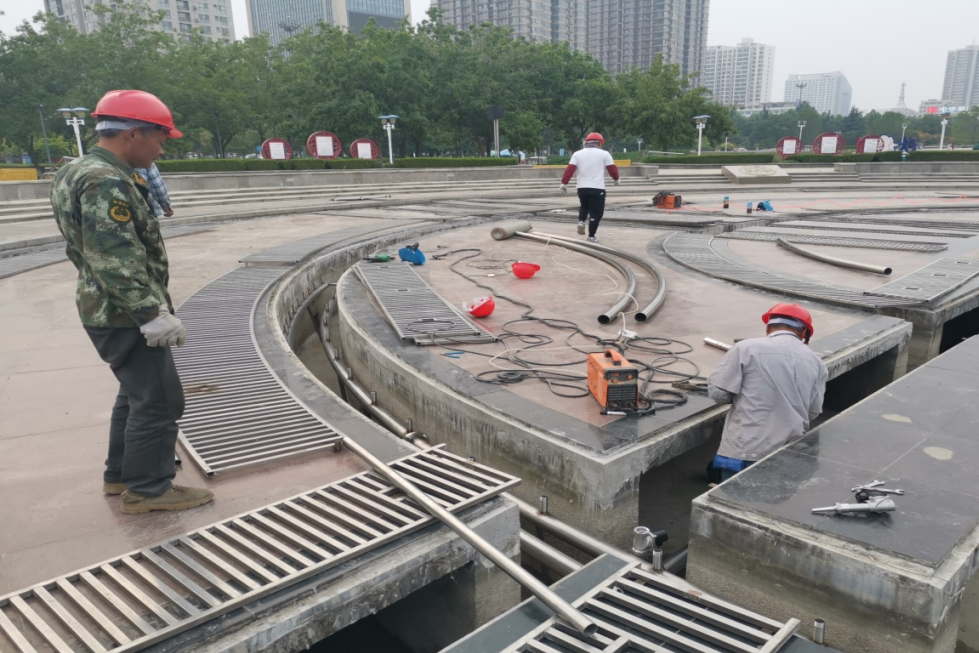 本次喷泉升级改造是在现状泉池的基础上,对圆形彩色音乐喷泉、长方形跌落式景观喷泉地下管线、水泵、灯光、控制系统、配电电器等设备进行全面的升级改造。