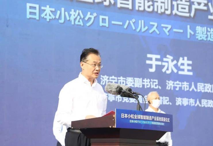 于永生在致辞中表示,近两年我市把制造业作为高质量发展的战略抓手,大力培育高端装备、高端化工、新一代信息技术、新能源、新材料、现代医药等先进制造业产业集群,深入实施“干部助企攀登”,选派优秀干部脱产到企业一线驻企帮扶,组建百亿基金、百亿担保、百亿农担“三个百亿”,每年召开产业创新发展大会表彰优秀企业和企业家,全市上下掀起“大抓产业、大抓先进制造业”热潮。今年1-8月,我市规模以上工业增加值、新增“四上”企业等主要经济指标增速均居山东省前5位。小松是全球知名的工程机械制造商,自1995年投资济宁以来,先后带动胜代、大京等多家日本优质企业落户我市,成为济宁“制造强市”建设的中流砥柱,为服务地方经济发展、促进城市间交流作出了突出贡献。今天,小松全球智能制造产业基地项目的奠基,是济宁与小松深化合作的又一丰硕成果,也是济宁高端装备产业发展史上具有里程碑意义的大事。济宁将一如既往地拿出较大诚意、较好服务、最优环境,全力推动项目快建设、快投产、快达效。