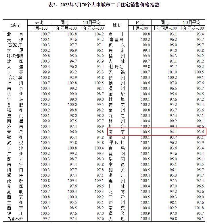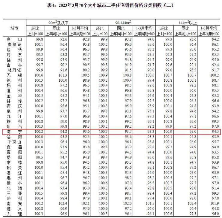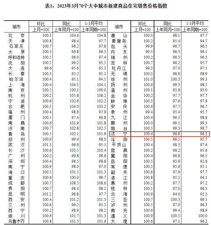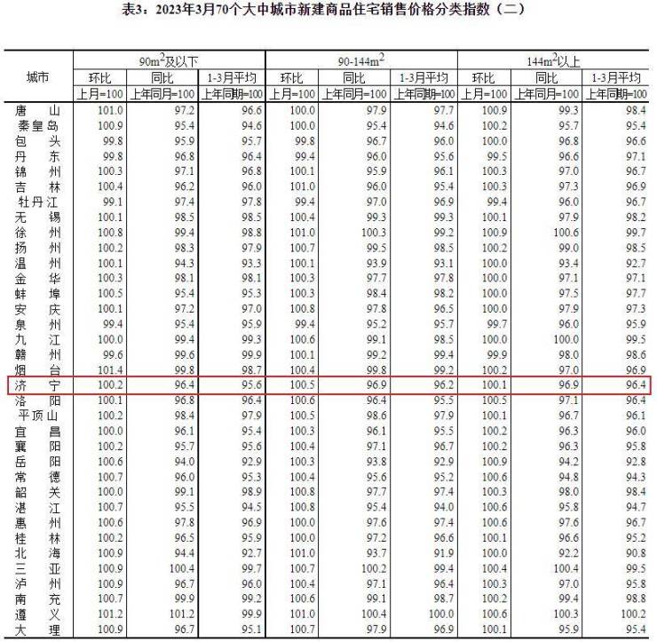 搜狐网济宁小编注意到:国家统计局发布了2023年3月份70个大中城市商品住宅销售价格变动情况统计数据。2023年3月份济宁新建商品住宅销售价格环比上涨0.4个百分点。