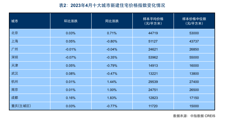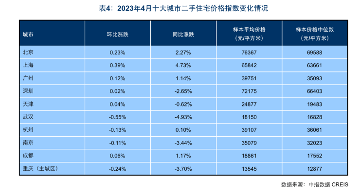 报告显示,2023年4月,全国100个城市新建住宅平均价格为16181元/平方米,环比上涨0.02%,涨幅与3月持平。全国100个城市二手住宅平均价格为15826元/平方米,环比下跌0.14%,跌幅较上月扩大0.09个百分点。