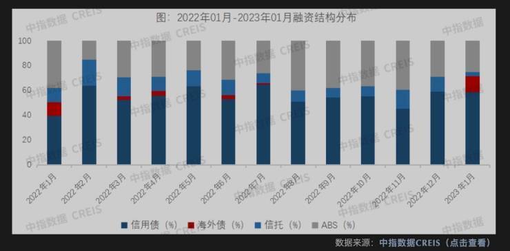 多个第三方平台统计数据显示,2023年首月房企融资额延续了同环比下降趋势,但降幅已经有所收窄,且信贷、债券、股权融资惠及的民营房企进一步扩容。克而瑞地产研究数据显示,1月80家典型房企融资总量环比和同比降幅仍在44%以上,但较2022年春节的2月增逾40%。