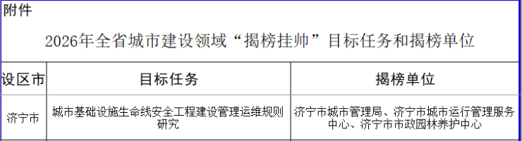 最新!济宁实施3项全省城市建设领域“揭榜挂帅”项目