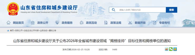 为进一步推动全省城市建设工作取得新突破、新成效,省住房城乡建设厅组织了2026年全省城市建设领域“揭榜挂帅”项目申报工作,在前期各地积极申报基础上,综合考虑各申报单位的基础优势、推进措施、预期成果等因素,经讨论研究,确定了“揭榜挂帅”目标任务和揭榜单位,现予以公布。