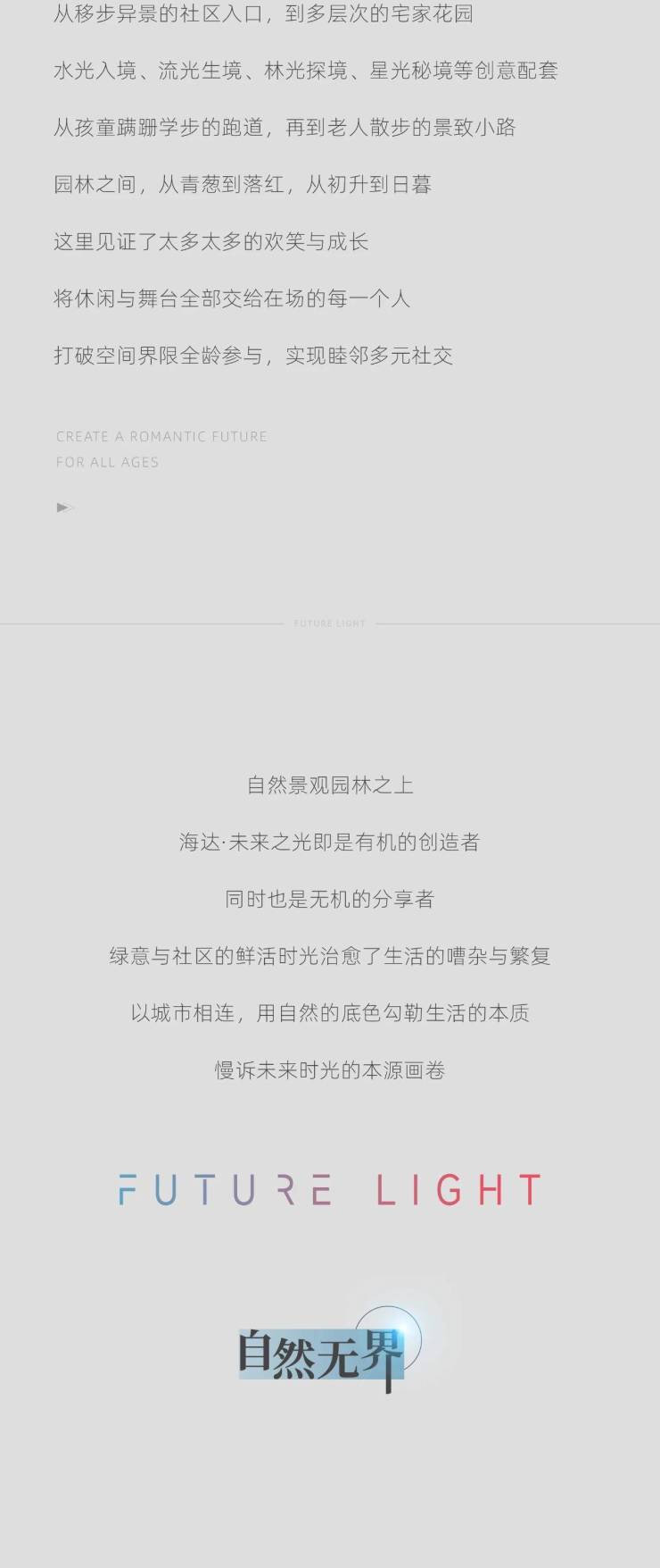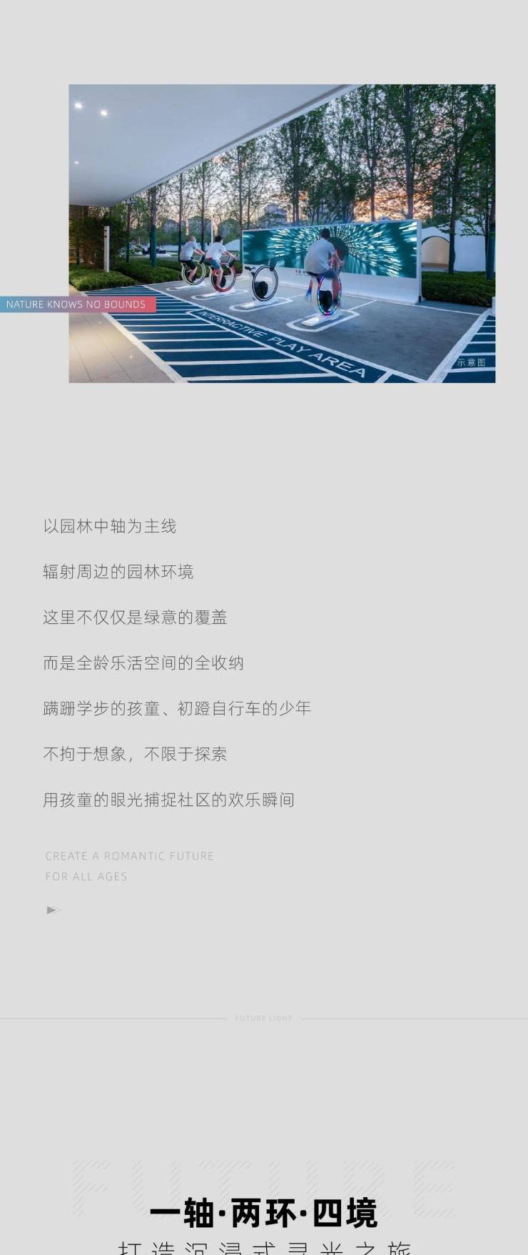 未来之光对于自然和城居的思考,远远超过了生活+自然的简单看加,而是将自然的每一处元素都注入到人居的细胞之中。项目将“星河”植入园林之中,在楼栋之间星落布局各大互动空间,将想象力交给四季的舞台,演化出别样多姿的自然轮转。