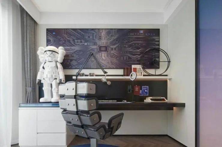 夫妻生活除了日常生活中的相濡以沫,也需要保留各自的空间。当自己的先生下班时,一个独立的电竞房或是茶室,正是对忙碌了一天的他的最佳犒赏,青春里的热血与激情、工作中的烦恼与压力,都在这方寸之间,用一局游戏来释放、一盏热茶来抚慰。