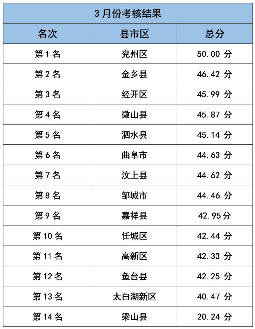 根据《济宁市生态环境保护考核工作实施细则》(济环委办〔2020〕2号),对各县市区2021年3月份的生态环境保护工作进行考核,现将考核结果予以通报。