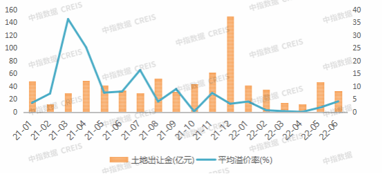 图:2021.1-2022.6鲁西南区域住宅用地成交溢价走势