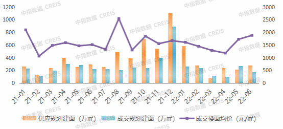 图:2021.1-2022.6鲁西南区域住宅用地成交走势