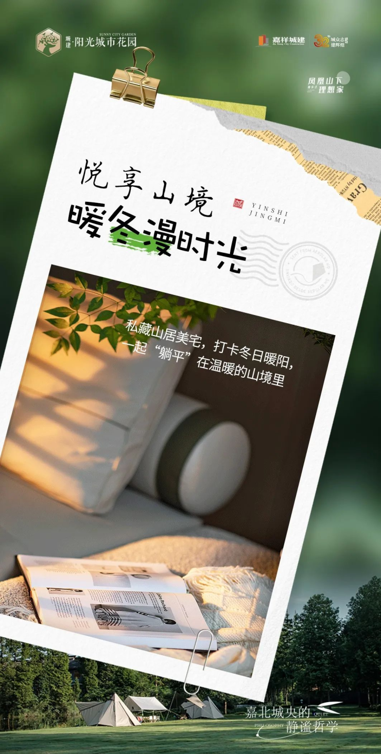 私藏山居美宅,打卡冬日暖阳,一起“躺平”在温暖的山境里。阳光城市花园悦享山境,暖冬漫时光。建筑面积约97-175㎡,嘉北正央,伴山时光。