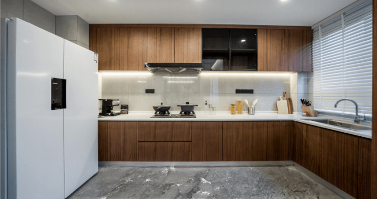 阔尺厨房设计,洗菜、切菜、烹饪区域分工鲜明,合理流畅的动线布局节省更多时间,让洗、切、烹饪等整个操作过程中井然有序,轻松烹饪一家人的珍馐美味。