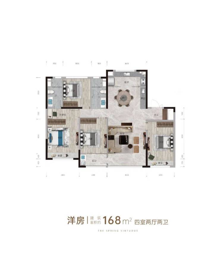 以建筑面积约168㎡宽境洋房为例,打破传统空间局限,形成“厨房、餐厅、客厅、多功能空间、阳台”的回形动线,实现居家动线和家政动线分而不离,达到生活效率、空间利用率与空间层次感的提升,让空间更适应人居需求,赋予生活万般美好。