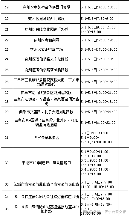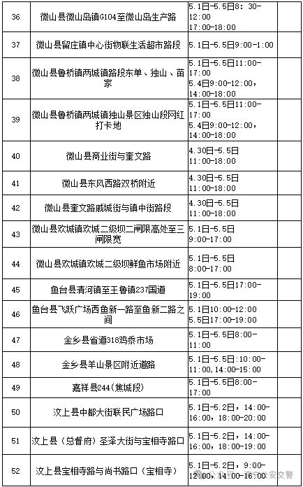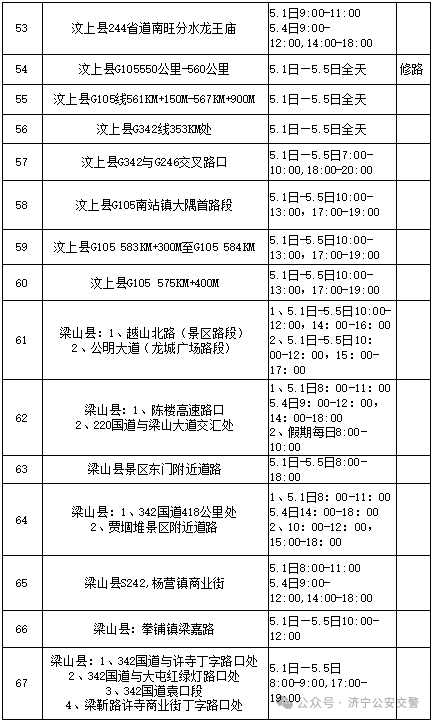 共计67处!“五一”假期期间济宁市易拥堵路段公布