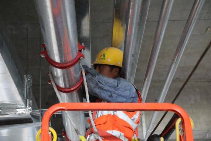 而在部分建筑内部,工人们正进行机电安装,包括消防管道、水电管线。该项目机电安装经理马超介绍,项目施工要求极高,任何动作都不容有失。为确保施工质量,项目团队决定将BIM技术贯穿施工全程。