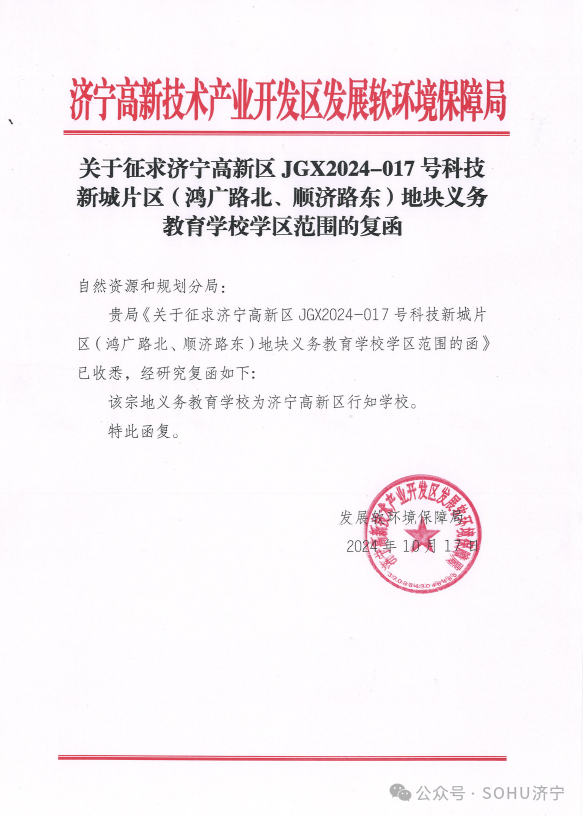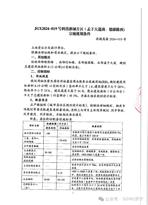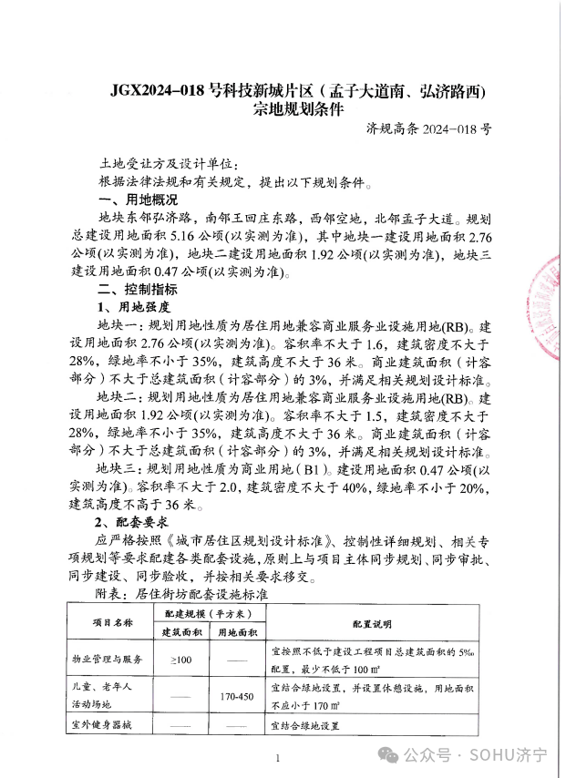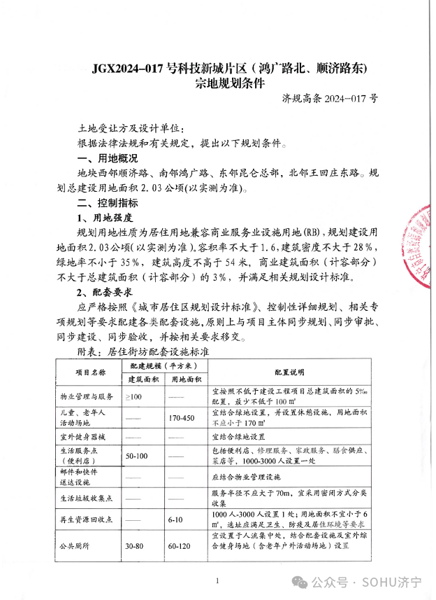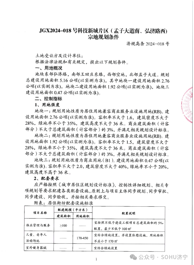 地块一:济宁高新区JGX2024-017号科技新城片区(鸿广路北顺济路东)地块【济宁宜居建设开发有限公司竞得】