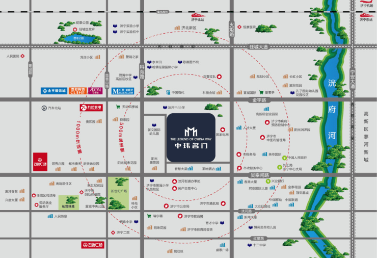中玮名门,周围优质教育资源丰富,包括新文国际幼儿园、洸河中小学、济宁附小(科苑校区) 、育才中学等学校环伺左右,拥有浓厚的人文学术气氛,共筑难得城芯书香翰墨大境。