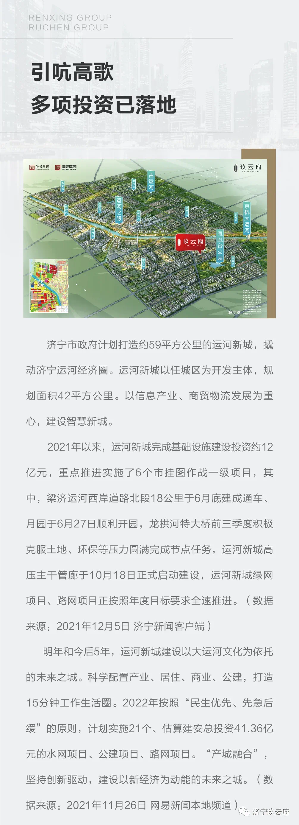 玖云府携时代前瞻眼界,落址城西,由百亿国企任兴集团携手实力名企儒辰集团联手打造。项目紧邻老城区,交通便利,短途直达沃尔玛、运河城、万达广场等商业中心,打造短时便捷生活圈。毗邻凤凰台植物园,尽享自然丰盛馈赠。周边商业、医疗、教育配套正在逐步建设中,璀璨可期。