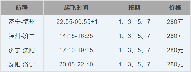 票价低至280元!济宁机场新增福州=济宁=沈阳航班