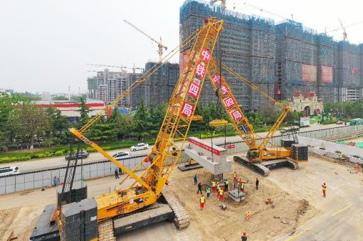 预制构件场距离线下施工现场约6.5km,运输线路均为济宁市重要交通要道,车流量较大,因此运输过程中交通组织困难成为该项目施工难点之一,中铁四局项目经理陈志龙介绍,现场两台履带吊协同作业,保证协调同步难度大。同时,安装过程垂直度、轴线偏差、标高要求精度高都增加了项目建设难度。