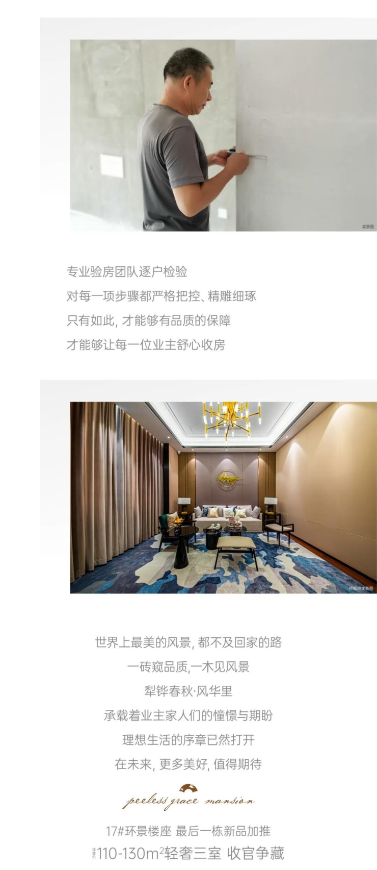 世界上最美的风景,都不及回家的路。一砖窥品质,一木见风景。犁铧春秋风华里,承载着业主家人们的憧憬与期盼,理想生活的序章已然打开。在未来,更多美好,值得期待。17#环景楼座,最后一栋新品加推。建面约110-130㎡轻奢三室,收官争藏。