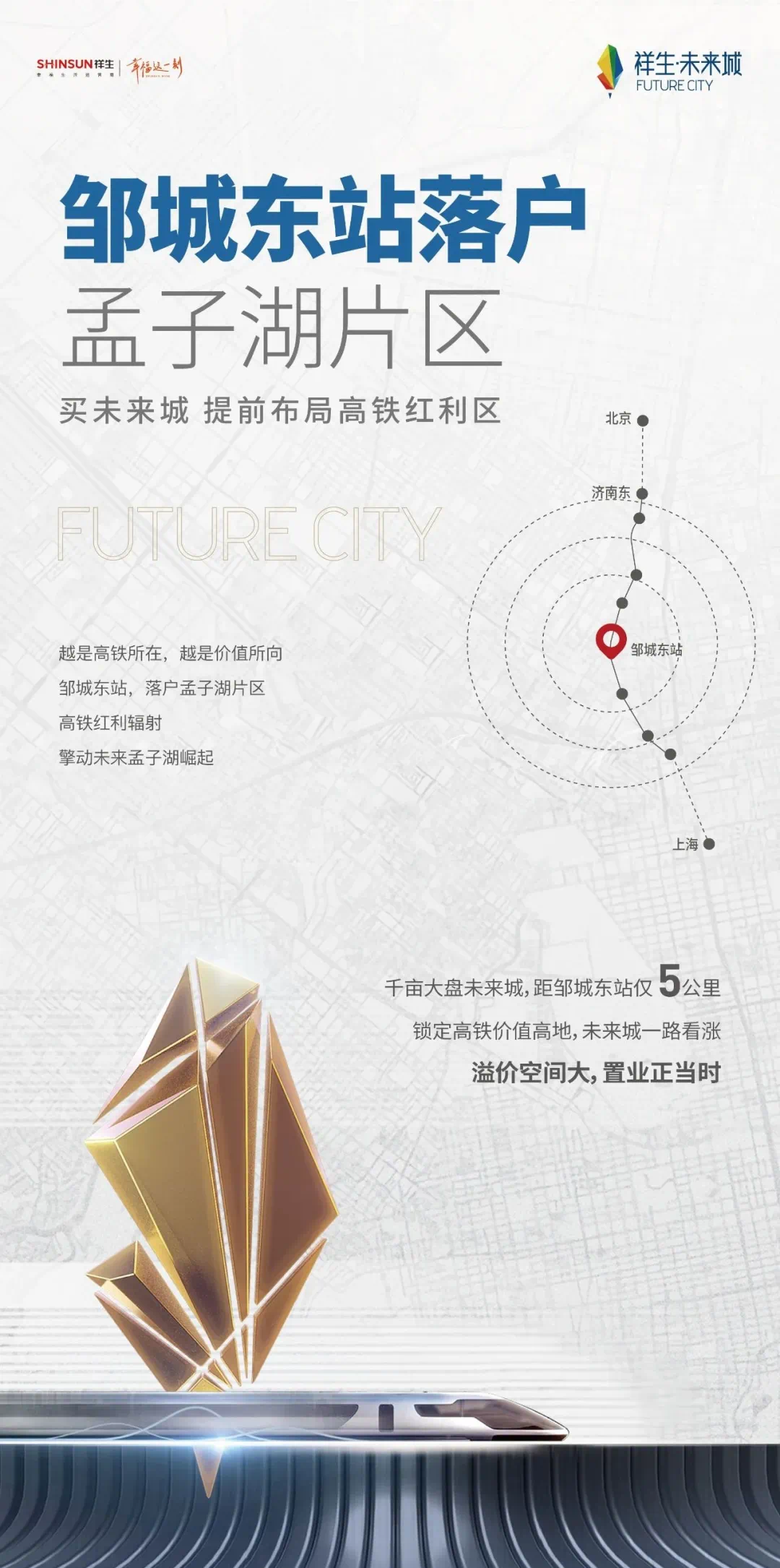 千亩大盘祥生·未来城,距邹城东站仅5公里,占位高铁红利首排,锁定高铁价值高地,未来城一路看涨,溢价空间大,置业正当时。