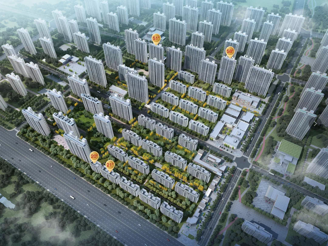 51#、58#楼所在地块,位于千亩大盘未来城中心地块,社区内幼儿园、商超、运动会所、儿童乐园、邻里中心、商业街等配套邻里,出门即享一站式繁华;远离城市主干道,居于此,皆可免受噪音干扰与尾气污染,私享安静惬意舒居。