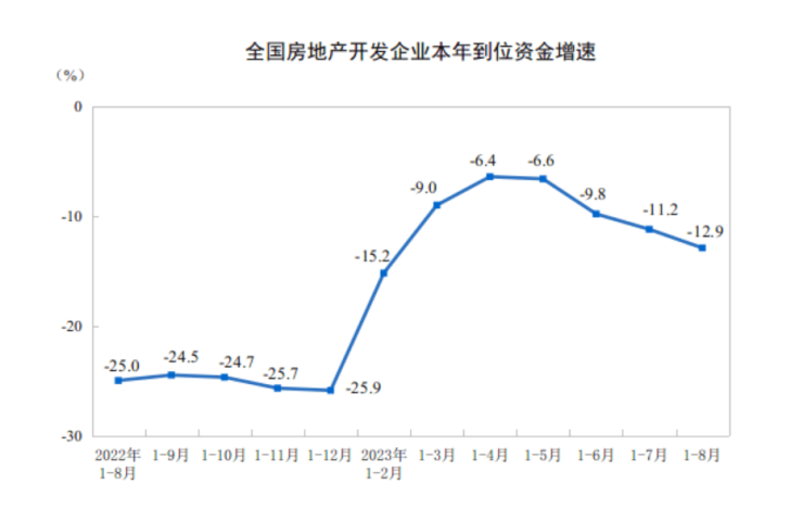 前8个月房地产开发投资同比下降8.8%,住宅待售面积增长19.9%