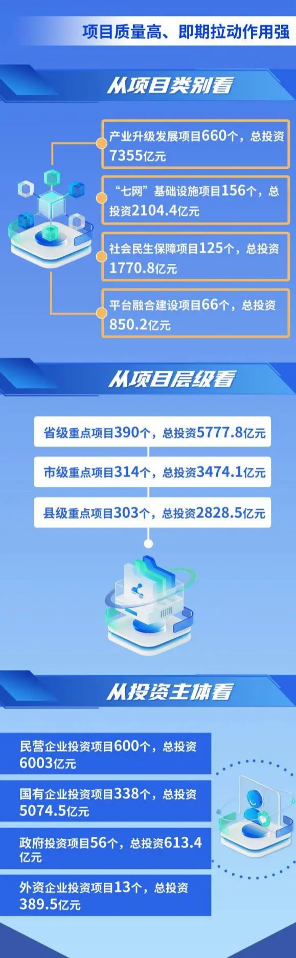 重大项目建设是稳定经济运行的压舱石,是全方位推动高质量发展的主引擎。这次集中开工的重大项目,涵盖产业升级发展、“七网”基础设施、社会民生保障、平台融合建设等领域,年度计划投资3520亿元。总体来看,项目质量高、即期拉动作用强,项目平均单体投资、投资10亿元以上大项目数量、产业项目占比均好于2023年,将对我省一季度经济平稳开局形成良好支撑。