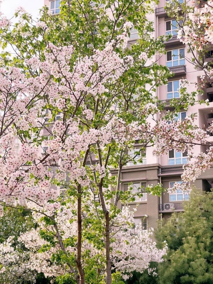 4600余株染井吉野樱像商量好了似的,一夜之间全开了。我慢下来,再慢下来。车窗成了画框,每一帧都是大片:粉白的花瓣雨,阳光透过花枝洒下斑驳的光影,风一吹,整条街都下起了雪——粉色的雪。