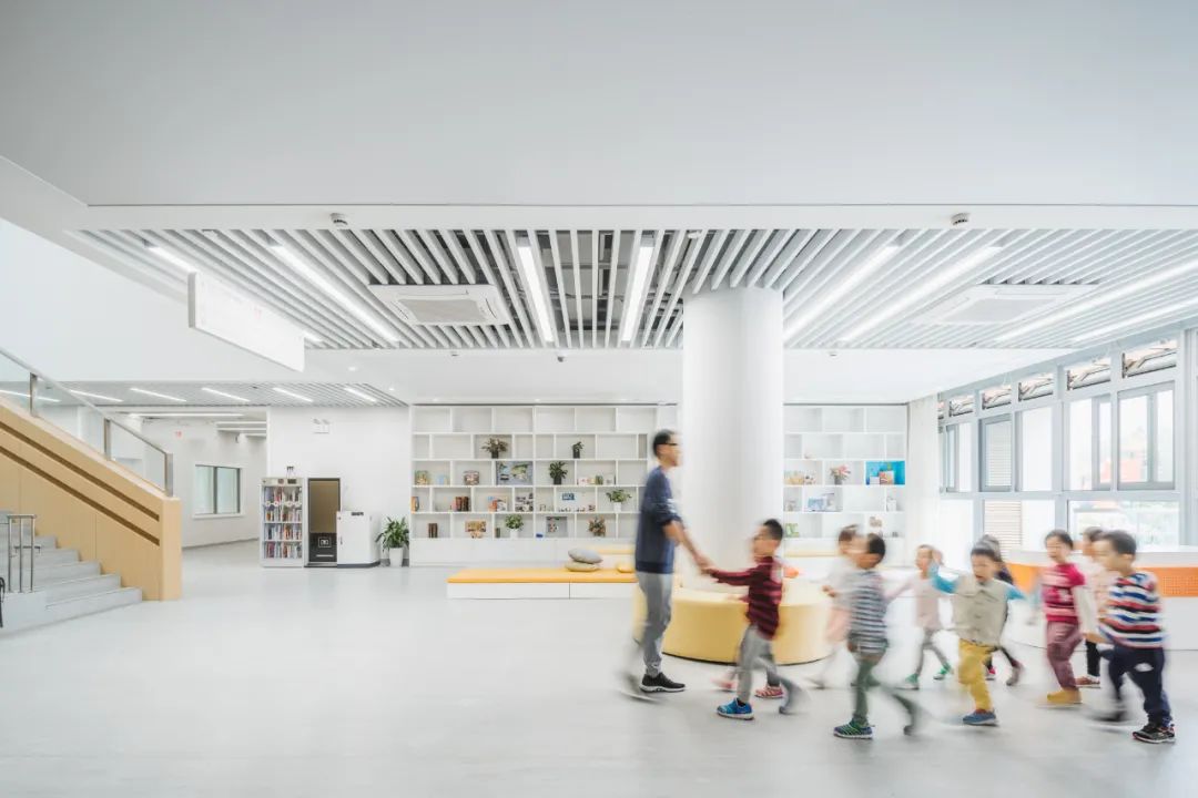 幼儿园是孩子们在成长过程中排名前列个接触的公共空间。空间的尺度、使用的灵活度以及室内的场景和氛围,对于幼儿的感受和认知都有很大影响。设计要能激发孩子们探索和学习的兴趣,同时要给他们足够的安全感。