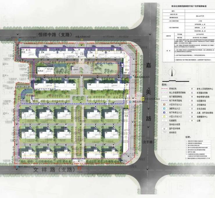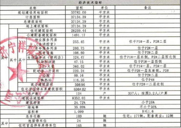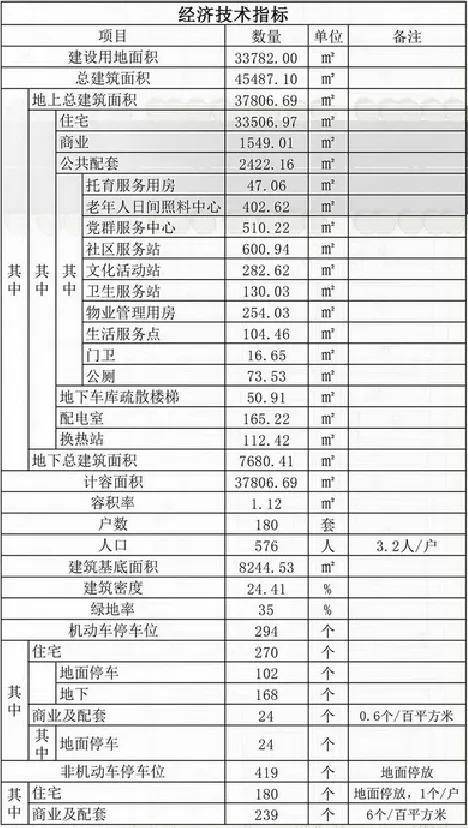 规划建设用地面积33782㎡,调整后规划总建筑面积45487.1㎡,其中地上建筑面积37806.69㎡,地下建筑面积7680.41㎡。容积率1.12,建筑密度24.41%,绿地率35%。机动车停车位294个,非机动车停车位419个。