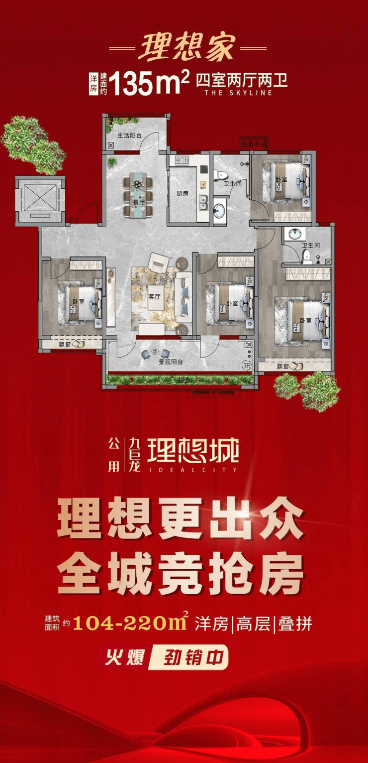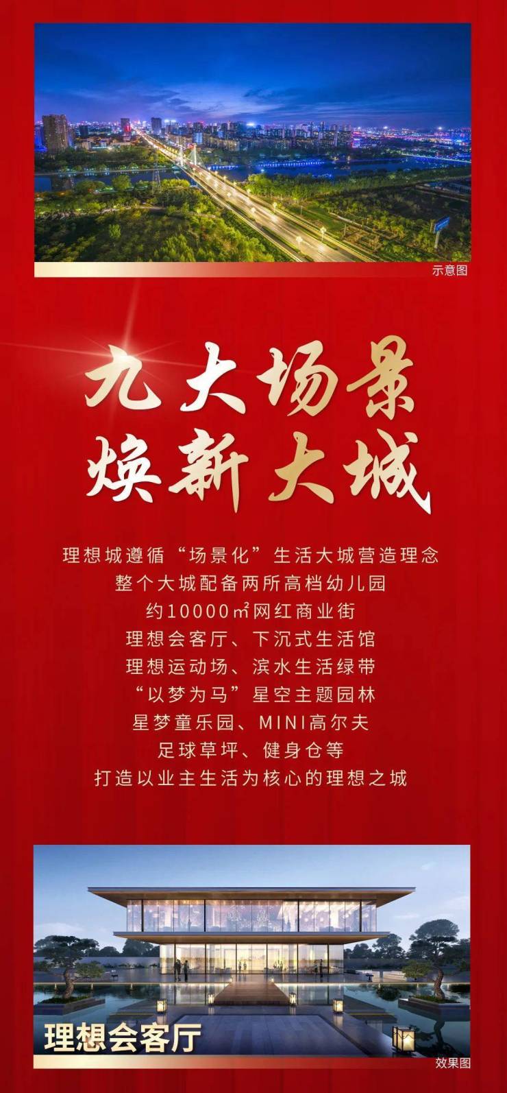 公用九巨龙·理想城遵循“场景化”生活大城营造理念,整个大城配备两所高档幼儿园,约10000㎡网红商业街。理想会客厅、下沉式生活馆、理想运动场、滨水生活绿带、“以梦为马”星空主题园林,星梦童乐园、mini高尔夫、足球草坪、健身仓等。