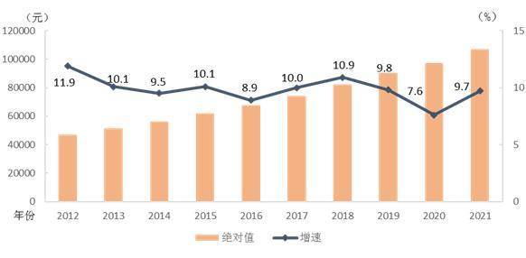 2021年全国城镇非私营单位就业人员年平均工资为106837元,比上年增加9458元,首次超过10万元,名义增长9.7%,增速比2020年提高2.1个百分点。扣除价格因素,2021年全国城镇非私营单位就业人员年平均工资实际增长8.6%。数据来源:国家统计局