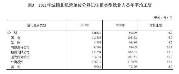 分登记注册类型看,年平均工资较高的是外商投资企业126019元,为全国平均水平的1.18倍;年平均工资较低的是集体单位74491元,为全国平均水平的70%。截图来源:国家统计局网站