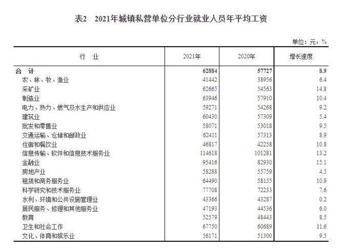 城镇私营人均工资62884元
