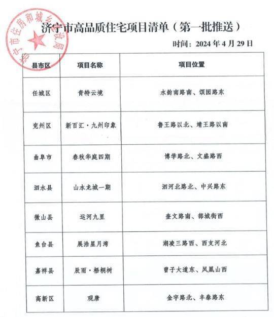 共计8个项目!济宁市高品质住宅项目清单(第一批推送)发布