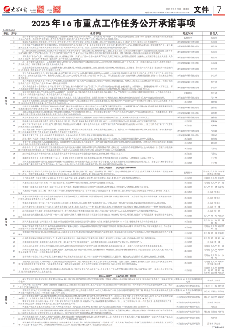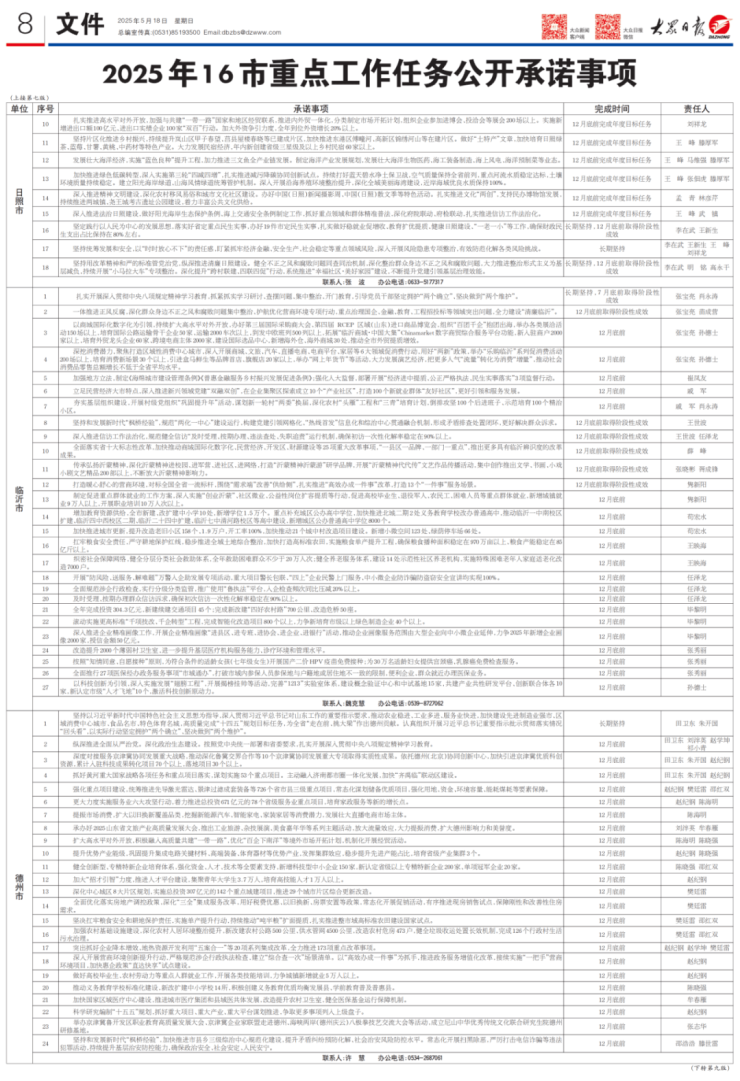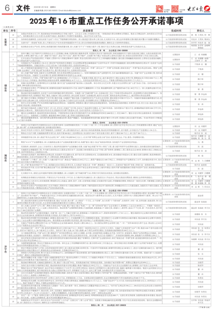 事关济宁!2025年山东16市重点工作任务公开承诺事项公布