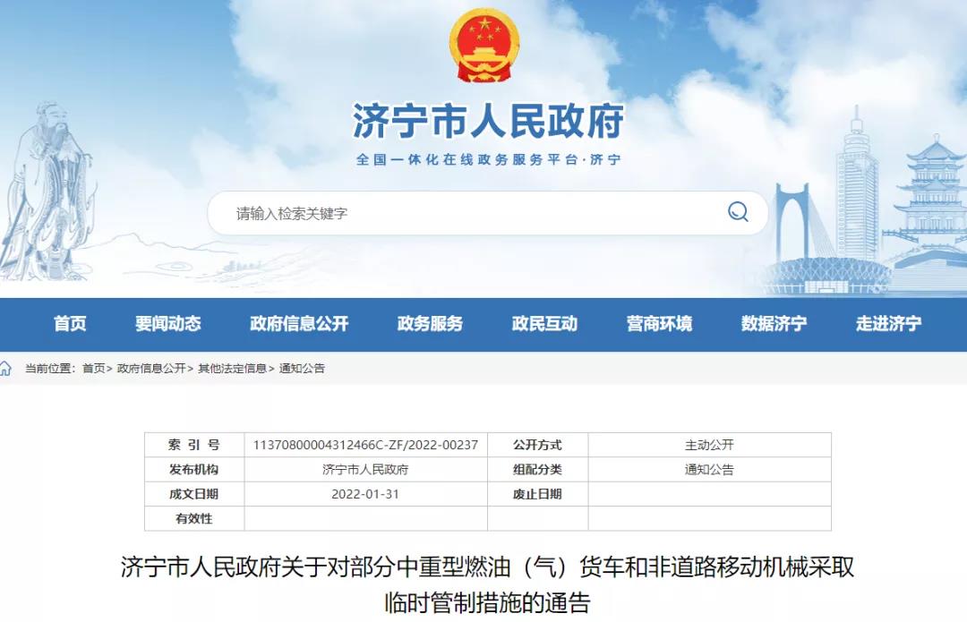 近日,济宁市人民政府发布对部分中重型燃油(气)货车和非道路移动机械采取临时管制措施的通告,一起来看!